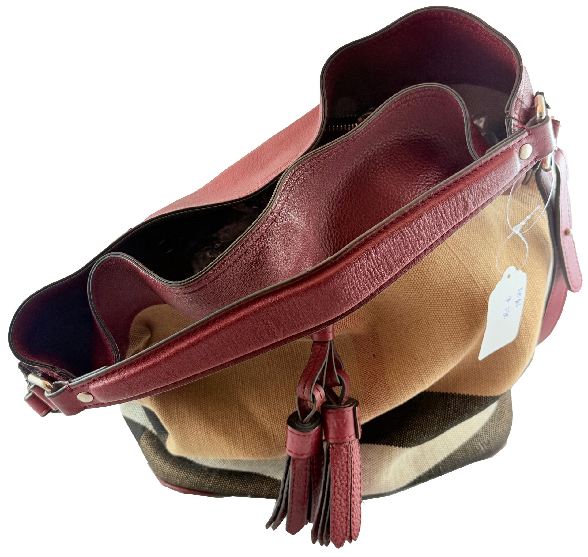 Burberry Burgundy Ashby Bag House Check Canvas